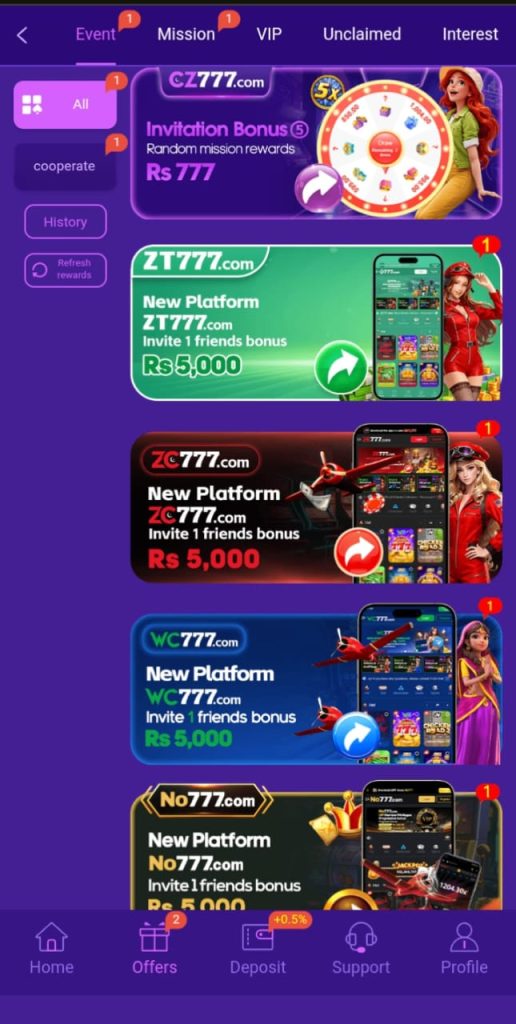 - Claim welcome offers, daily rewards, and referral bonuses.