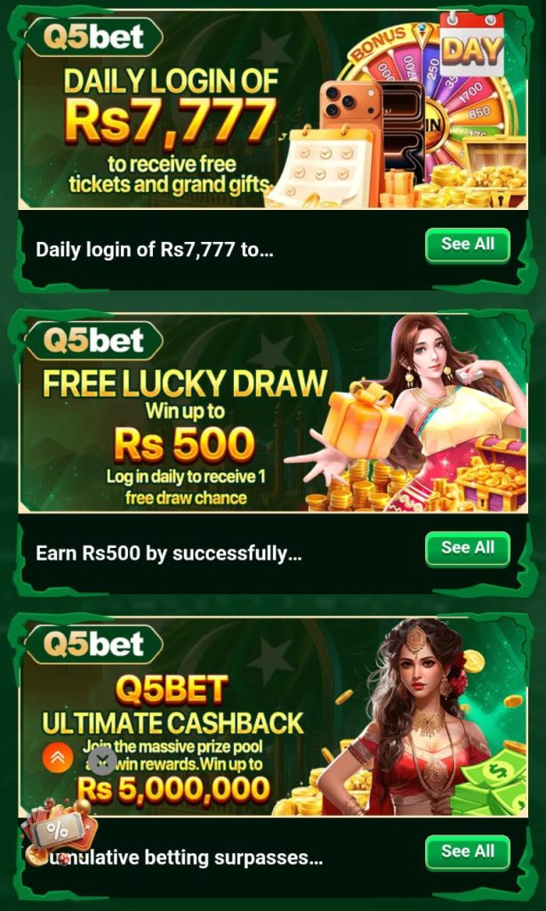 Q5Bet Game is an online earning platform where you can play casino-style games and collect rewards. The app offers slots, cards, sports-based options, and quick earning features. It works smoothly on most Android phones. It also supports fast deposits and withdrawals through local payment channels in Pakistan.
